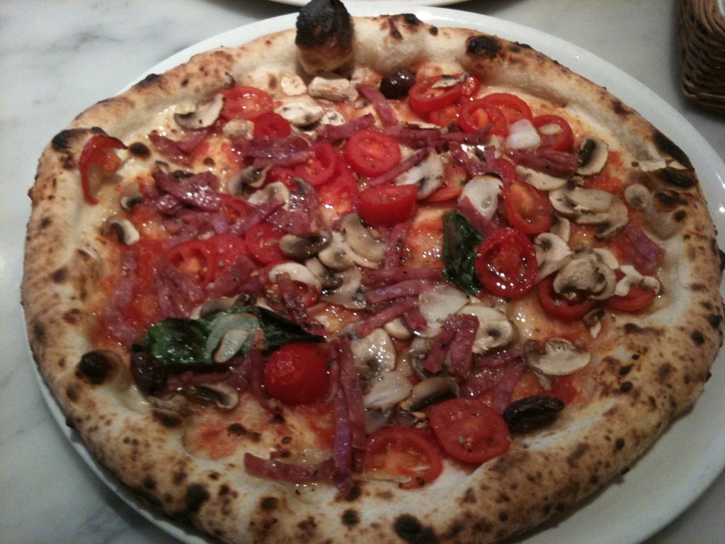 マッシュルームとトマト、サラミがふんだんに使われています。